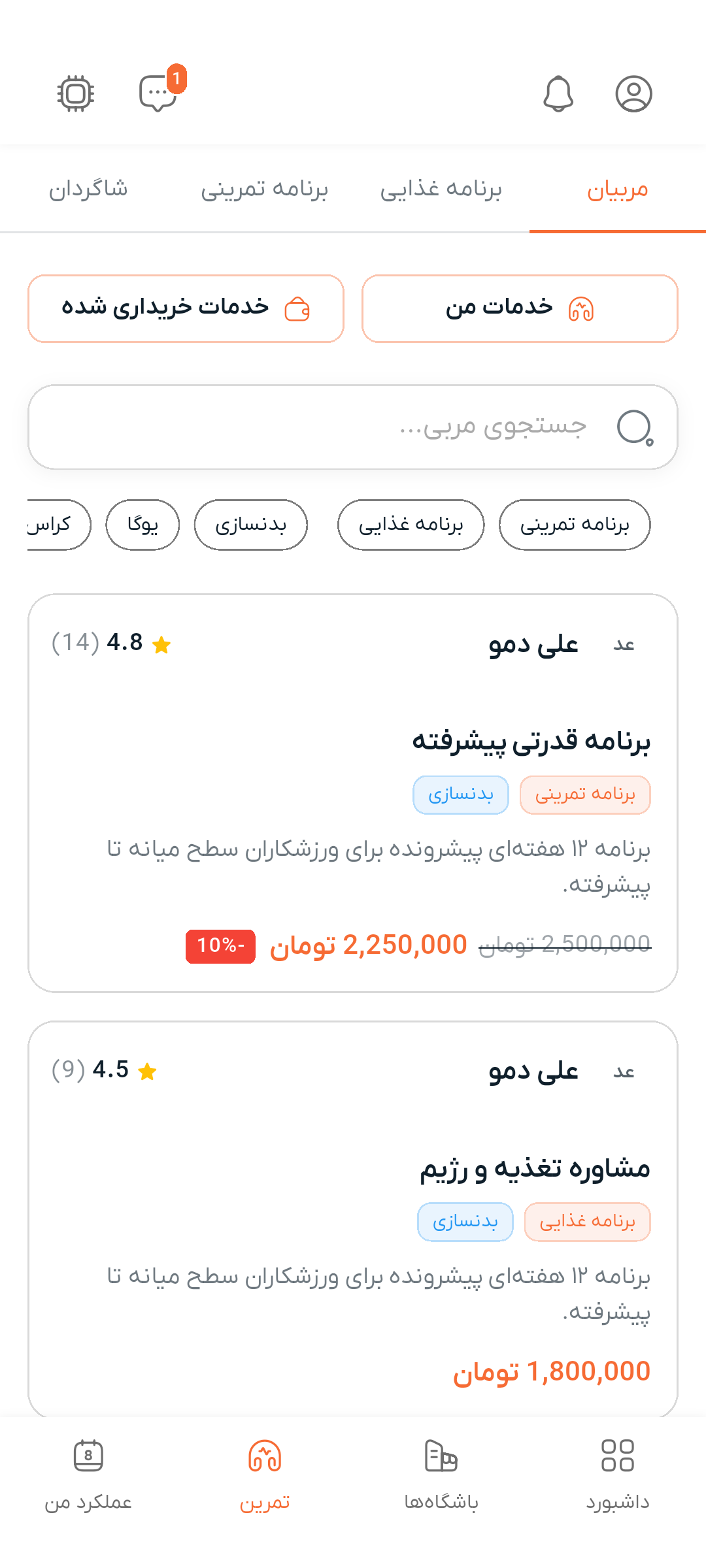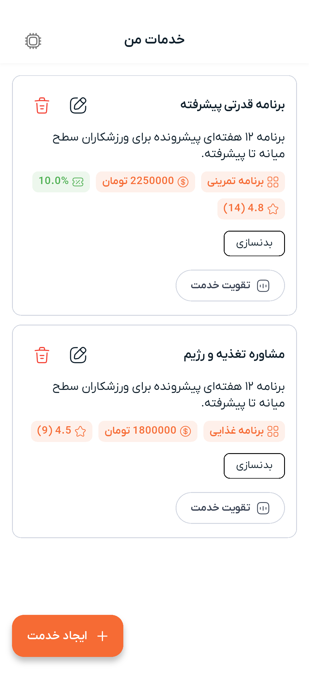 اگر مربی هستید، میتوانید سرویسهایی که ارائه میدهید را بسازید و مدیریت کنید.