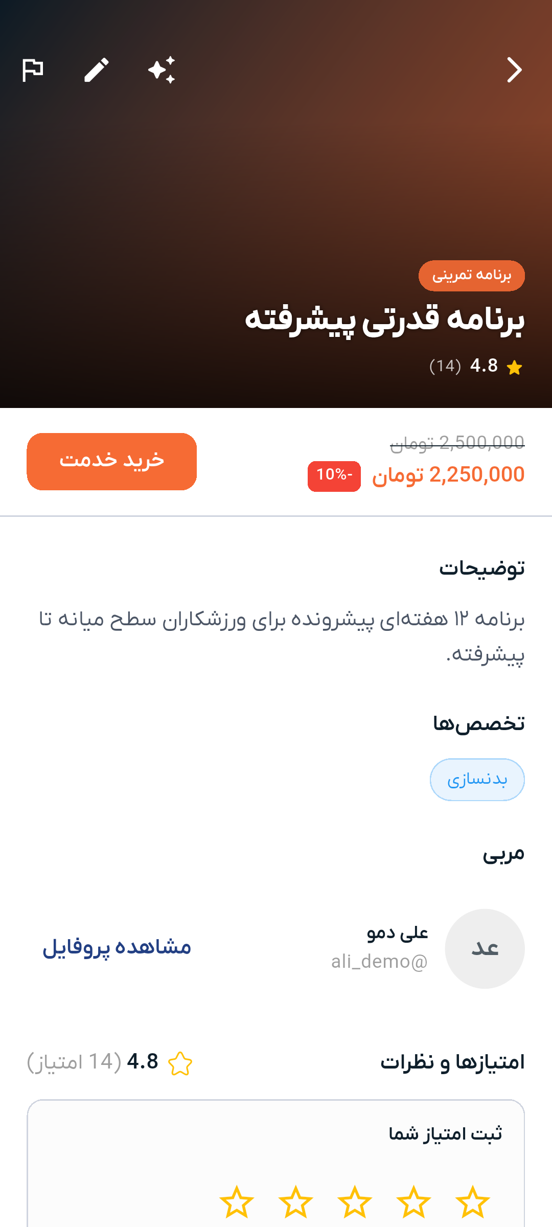 پروفایل یک مربی نشان میدهد: