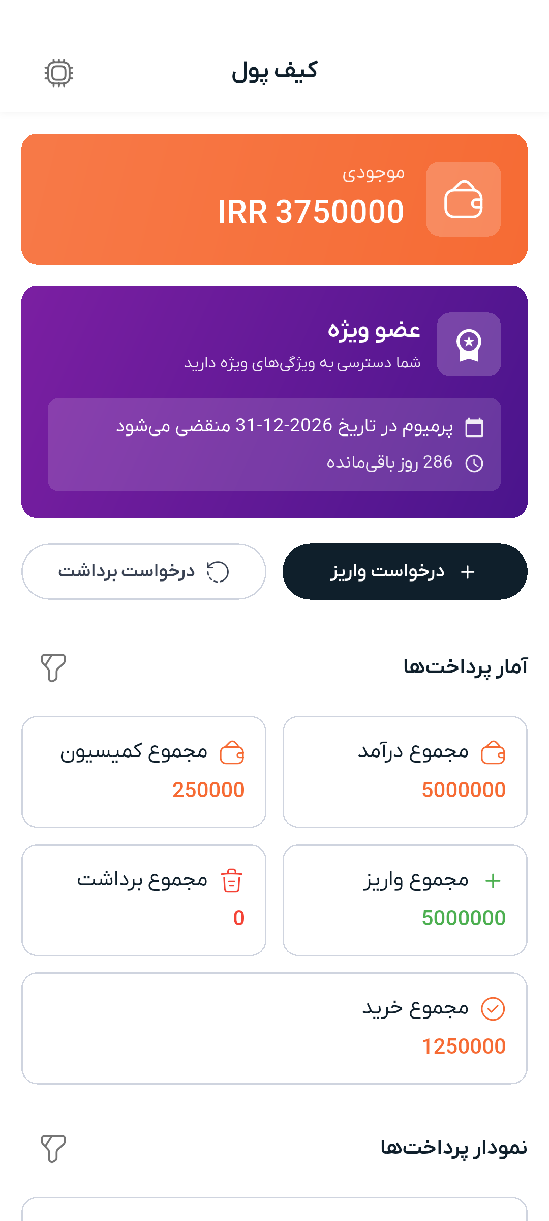 موجودی فعلی در بالای صفحه کیف پول و همچنین در داشبورد نمایش داده میشود.